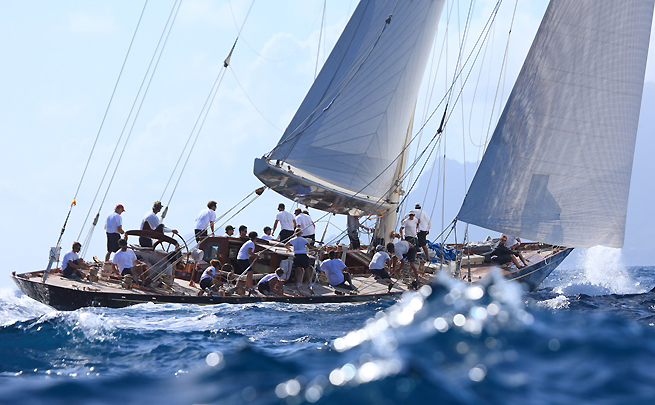 L’ensemble des yachts Classiques engagé dans la 36e édition des Régates Royales a pu courir l’incroyable parcours côtier organisé par le comité de course. Après un départ devant les plages de Cannes à l’ouest du Vieux Port, les compétiteurs ont longé les îles de Lérins pour s’engager dans un long bord direction le Cap Roux et ses majestueuses falaises rouges. Malheureusement, le comité de course a été contraint de réduire le parcours en face de La Napoule en raison du vent faiblissant.