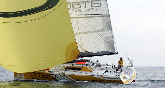 A peine le nouveau grand spi à bord agrémenté d’une plaquette de chocolat et de quelques mots d’encouragement, il s’est déhalé et a repris aussitôt la mer. En tout et pour tout, Dominic sera resté 25 minutes dans le port.