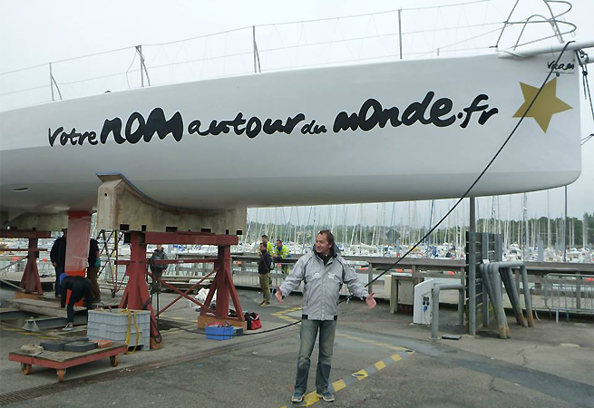 Après avoir passé tout l’hiver au chantier, et attendu les conditions idéales, le 60 pieds de Bertrand de Broc, Votre Nom autour du Monde a regagné l’eau. Une manœuvre délicate ayant nécessité l’aide d’une grue et la mobilisation de toute l’équipe. Un envol et une mise à l’eau qui au final jusqu’à la pose du mât, se seront très bien passés.