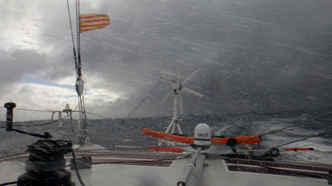 A 11h44 ce matin, We Are Water a annoncé a son équipe à terre qu’en début de matinée, fin de journée pour Jaume Mumbru et Cali Sanmarti, une vague énorme avait violemment percuté le bateau. L’impact sur la coque très puissant a submergé le pont sous des quantités importantes d’eau. Sous la pression la bâche qui protège l’entrée du cockpit a explosé et l’intérieur du bateau, le carré, a été inondé. Une grande partie des équipements électroniques sont hors d’état en ce moment. Jaume et Cali ont alors décidé de mettre le bateau à la cape pour réparer ces problèmes électriques avant de refaire cap vers le détroit de Cook.