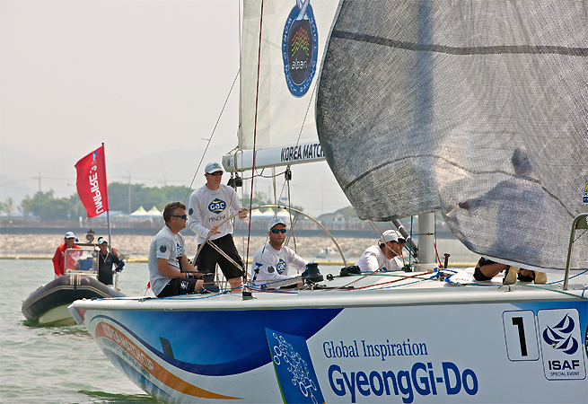 Le vainqueur du World Match Racing Tour 2011, Ian Williams devrait se qualifier sans trop de soucis cette semaine en Corée après avoir bien démarré l’épreuve. Au terme de cette seconde journée, il mène le classement ayant signé six victoires pour une seule défaite. Le skipper britannique s’est incliné face au Néo-Zélandais, Laurie Jury mais se disait très content d’avoir battu Peter Gilmour, qui selon l’intéressé a néanmoins « bien profité des nouvelles règles pour provoquer une collision avant d’effectuer immédiatement sa pénalité. » Williams n’était pas content d’une décision des arbitres lors du duel avec Jury, prétendant que le bateau comité était à la dérive et que la ligne de départ n’était pas établie d’une façon équitable.