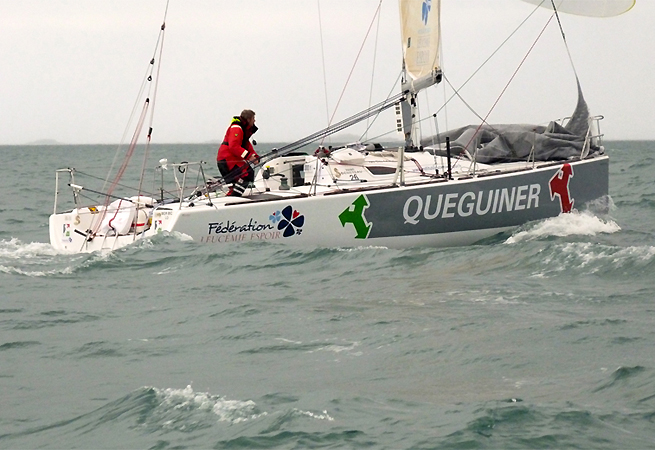 Yann Eliès : “Ca s’est vraiment joué de peu, mais je suis devant, c’est ce qui compte ! Finalement, à la faveur d’une petite risée qu’il n’a pas vu, j’ai réussi à me décaler un peu, et à le doubler, puis à le contenir une vingtaine de mètres derrière moi jusqu’à la ligne d’arrivée. Cette course a offert peu de possibilités de revenir à ceux qui étaient derrière. C’était éprouvant, avec des conditions vraiment exécrables : de la pluie, du vent, de la mer, et aucune visibilité. Physiquement, c’était bien engagé, avec pas mal de manœuvres, pas mal de changements de voiles, peu d’opportunités de lâcher la barre et de dormir. Les petits jeunes ont du mal à être tout le temps devant, mais quand ils ont une opportunité, ils savent la saisir. Ce sont des concurrents de plus en plus dangereux. Charlie sera certainement un bon client cette saison. On a moins vu Corentin Horeau, mais c’était un parcours assez cadenassé.”