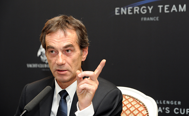 Bruno Peyron : " Depuis l’annonce officielle du projet, en février dernier, nous avons avancé sur tous les compartiments : technique, design, sportif, management, marketing,… et nous sommes tout près d’y arriver… mais pour finaliser nos accord financiers, il nous manque du temps. J’ai peur par ailleurs que le circuit AC45 tel qu’il est annoncé ne décourage des partenaires.. Je ne souhaite guère y participer quelque soit le déficit d’entraînement que cela peut créer par rapport aux autres. Nous saurons compenser par ailleurs". Energy Team a posé clairement plusieurs questions aux organisateurs : obligation de participer au circuit AC45; pénalité en cas d’inscription tardive, modalités d’organisation avec l’arrivée des AC72,… et attend les réponses avant de s’engager. Bruno Peyron : " La révolution culturelle et technique engagée est une très bonne chose, mais dans son processus d’organisation, il faut savoir protéger l’intérêt général et celui des candidatures que j’appelle "commerciales"…".