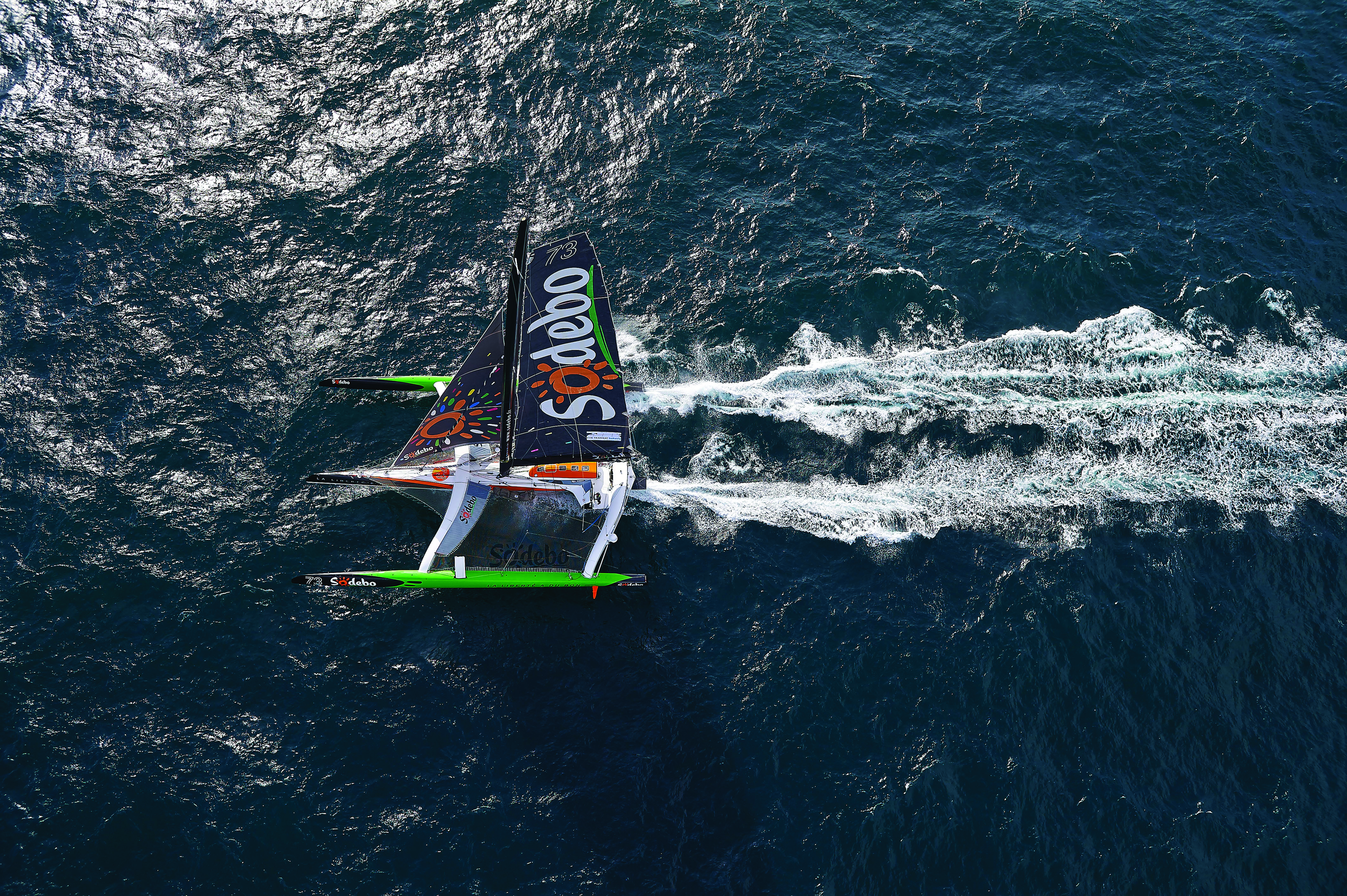 Avec plus de 25 nœuds en vitesse moyenne depuis Ouessant, Thomas Coville affole les compteurs ! En neuf jours, Sodebo Ultim’ a parcouru plus de 6000 milles (plus de 11 110 kilomètres).