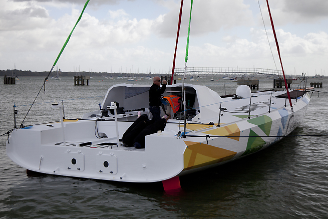 Manager technique du projet, Joff Brown, passe en revue les modifications : « Mike veut que le bateau soit super léger et super fiable tout en gardant tout son potentiel. Hier, nous avons mis en place le plus gros changement sur le bateau : un nouveau mât non rotatif avec une configuration classique et par conséquent, il a fallu faire des changements importants sur le pont et le cockpit pour accommoder cela. Le mât a été construit pour répondre à un cahier des charges très fourni et avec une nouvelle technologie de moulage assez révolutionnaire à cette échelle. Nous espérons que cela deviendra un point de référence pour les mâts de ce type de bateaux. »