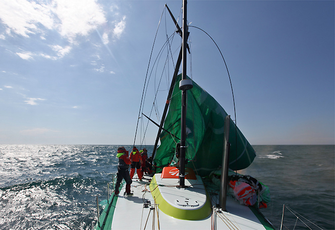 À l’entrée du Rio de la Plata, Punta del Este accueille aujourd’hui le bateau vert et ses 11 équipiers. Ils ont démâté hier à 650 milles de l’arrivée et ont immédiatement suspendu leur course à 17h42. « Dans notre malchance, on a une chance, » a commenté le skipper Franck Cammas. « La terre n’est pas loin. Ça aurait pu nous arriver il y a 10 jours au milieu du Pacifique. Ça aurait été beaucoup, beaucoup moins drôle. Là, ce n’est déjà pas drôle mais Punta del Este est à moins de 60 milles. »