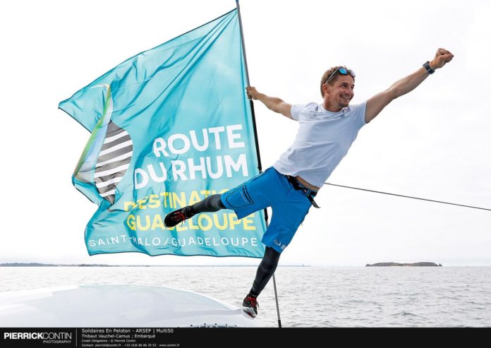 C’est l’enfant du pays qui revient à la maison. Troisième en Multi 50 et 5è en temps réel de cette Route du Rhum, Thibaut Vauchel-Camus a réalisé une très belle course jusqu’à son avarie qui l’a contraint à faire un pit-stop en un temps record aux Açores, puis à baisser la cadence après avoir cassé son hook de GV alors qu’il était dans un beau duel avec Erwan Le Roux. A 20h30 heure française, il a passé la marque de Basse Terre et devrait arriver vers 23h30. C’est une grande fête et un bel accueil qui l’attend !
