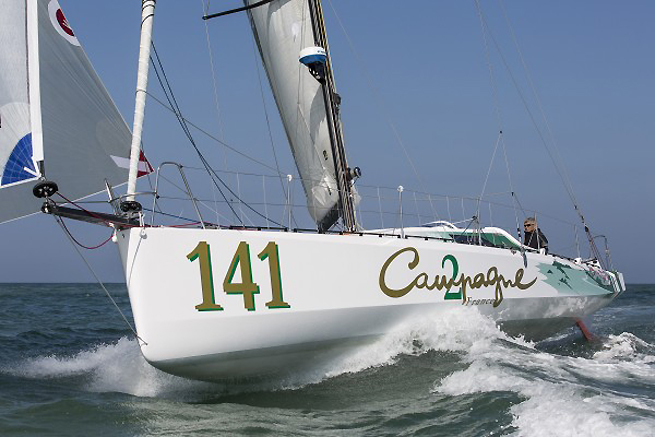 “Campagne2France ressemble fortement à Campagne de France, car ils sont de la même famille des Pogo. Le plan de pont reprend les bons principes de Campagne de France et est quasiment identique, donc je m’y suis tout de suite senti à l’aise. La carène est un peu différente et son comportement est agréable. Nous n’avons pas pu tester le bateau dans toutes les conditions, notamment au portant dans la brise, allure qui devrait être favorable à Campagne2France… en tous cas je l’espère. Il semble être en tous cas un bon bateau “all around”, c’est à dire assez à l’aise quelles que soit les conditions de mer et de vent, et plutôt assez facile à faire marcher. En termes de performance il y a encore beaucoup d’inconnues, car nous n’avons fait “que” 900 milles avec les 2 bateaux bord à bord, et c’est forcément trop peu pour se rendre compte comment marche un Campagne par rapport à l’autre Campagne dans chacune des conditions.”
