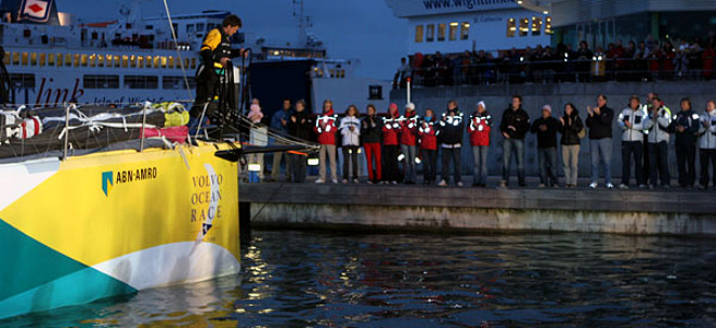 En témoignage de leur soutien et de leur compassion, des centaines de personnes sont venus accueillir l’équipage d’ABN AMRO TWO. Les six autres teams, les organisateurs, les familles, les amis et de nombreux anonymes, chacun a tenu à être là pour saluer aussi un incroyable courage.