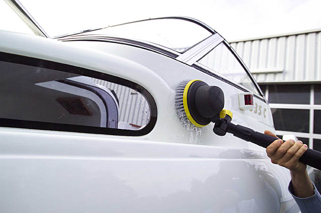 Performante, la nouvelle brosse rotative inclinable Kärcher est destinée au nettoyage des salissures résistantes sur les surfaces planes. L’efficacité de son mouvement rotatif permet à l’utilisateur de désincruster les impuretés jusque dans les angles, grâce à l’inclinaison des poils et à leur rotation. Ajustable, la vitesse de rotation de la brosse permet un nettoyage adapté au degré de salissure. Pour un plus grand confort d’utilisation et un accès simplifié au toit de la voiture, ou aux parties hautes du bateau,… la brosse rotative Kärcher est pourvue d’un système d’articulation. Avec son réservoir de détergent à débit réglable, la brosse rotative garantit un résultat d’une brillance irréprochable.