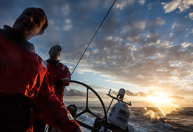 Sur ce début de sixième étape de la Volvo Ocean Race, il y a le soulagement d’une première nuit relativement calme. Les cinq Volvo Open 70 ont glissé toute la nuit dans une vingtaine de nœuds de sud-est avec des creux de deux à trois mètres. « Mon dieu, quel soulagement, » souffle par exemple le skipper de Puma, Ken Read. « Quel soulagement que cette introduction accueillante, quelle bonne nuit de voile ! Les 11 gars sur ce bateau sont soulagés d’avoir pu s’allonger dans leurs bannettes sans leurs cirés, et d’avoir dormi quelques heures sans être constamment appelés au milieu d’une grosse tempête. Pendant les bastons des premières nuits, on se sent vraiment mal, ce n’est pas marrant. »