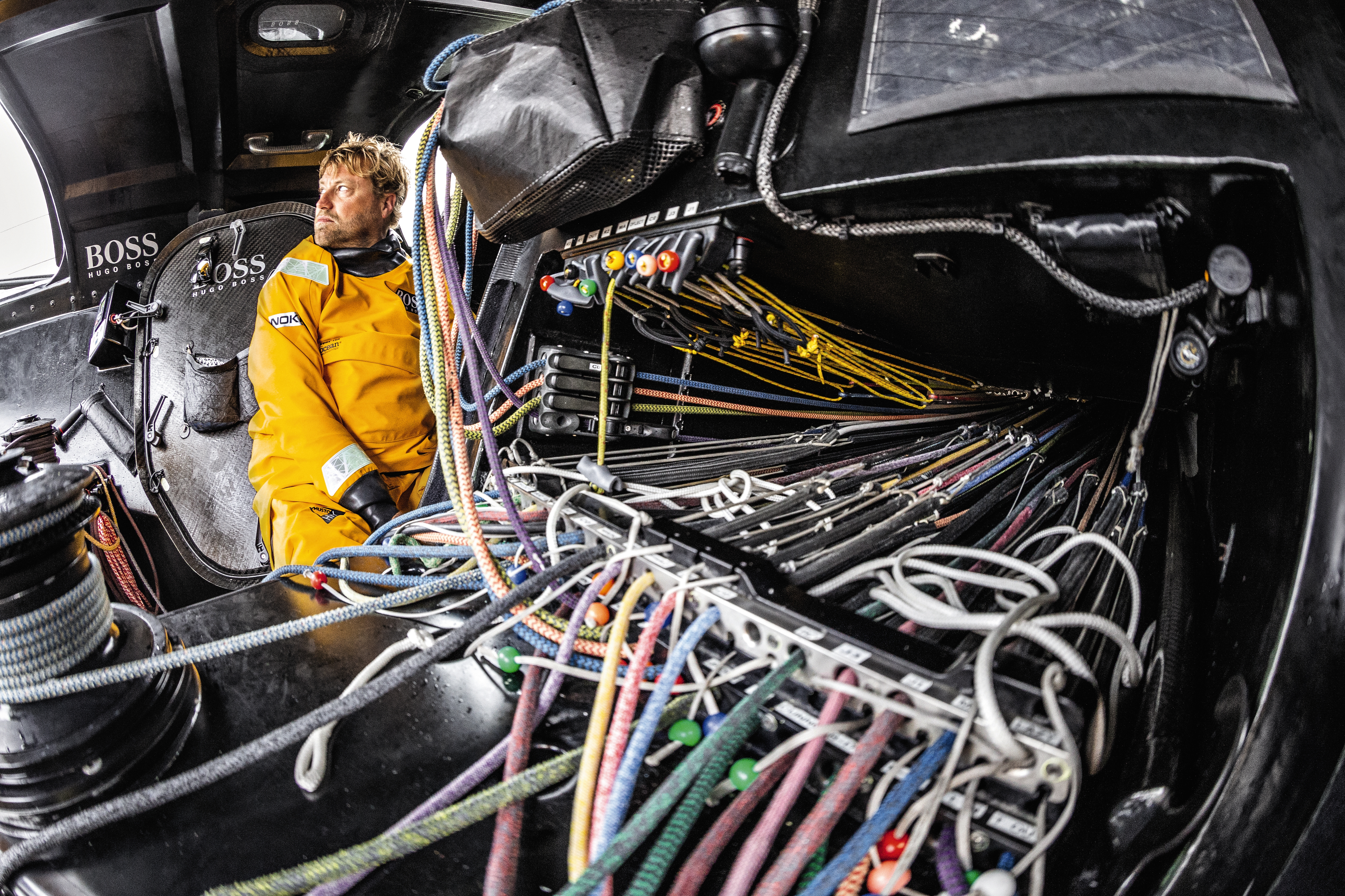 L’alizé, vu de chez nous sur les modèles, paraît toujours facile. C’est pourtant loin d’être le cas, car le vent n’est pas régulier en force et en direction. Il fait souvent très chaud, ce qui pompe de l’énergie. L’allure suivie actuellement par les bateaux de tête n’est pas évidente. Alex Thomson, Paul Meilhat, Vincent Riou, Yann Eliès et aussi Boris Herrmann naviguent au portant VMG (Velocity Made Good, la rechercher du meilleur compromis cap/vitesse). C’est une allure que l’on redoute, notamment parce qu’il faut passer des heures à la barre. Les pilotes ont beau être excellents, ils n’ont pas leur meilleur rendement dans ces conditions. Il faut aussi prévoir des empannages. Les gars doivent être au taquet ! Sous gennaker, le bateau est davantage calé que sous spi à la descente, où là ça peut être chaud. La règle c’est que plus tu as de surface devant, moins tu dors bien. Il reste encore un paquet de pièges à négocier avant l’arrivée : les grains, l’approche des îles avec les sargasses, les casiers, bref tous les impondérables de notre activité. Il faut rester à l’écoute !