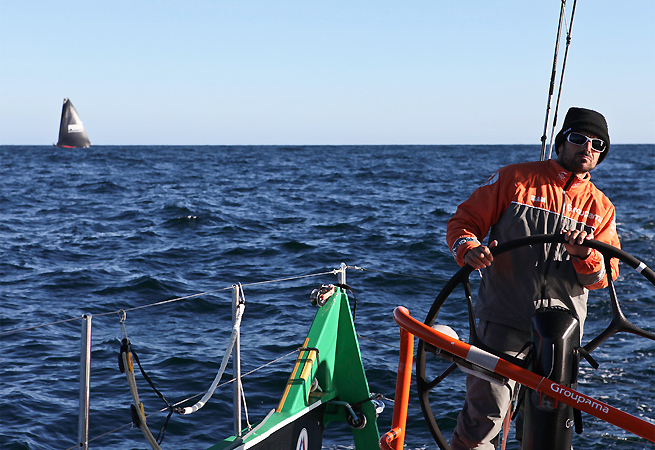 « Puma est à notre vent, à environ 4-5 milles : on est au près dans douze noeuds de vent depuis lundi soir. La régate comme ça, au contact, c’est vraiment plaisant ! On est servi depuis Cape Town puisque nous sommes souvent à vue avec un concurrent ou plusieurs. Cette situation à un côté Tour de France à la Voile, et c’est une pression permanente. Mais le vent devrait tourner avant Itajai et nous pourrons exploiter la vitesse au débridé de Groupama 4. Puma nous suit pour nous marquer à la culotte et les Américains sont plutôt en attente de nos réactions. Même de nuit, ils sont aux aguets et dix minutes après notre virement dans l’obscurité, ils nous ont suivi : ils peuvent nous surveiller aux jumelles et au radar… Je ne pense pas que nous allons nous lâcher jusqu’à l’arrivée ! » déclarait Franck Cammas ce mardi midi.