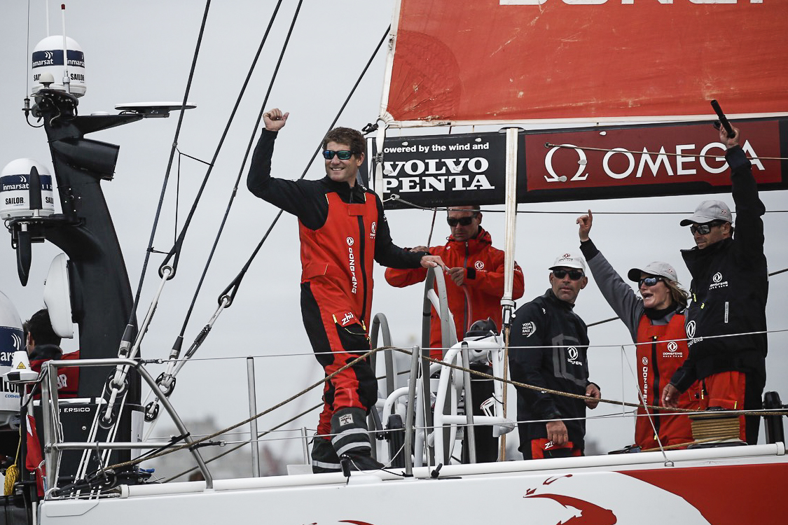 Leg 11, from Gothenburg to The Hague, arrivals. Dongfeng Race Team wins Leg 11 to take overall victory in Volvo Ocean Race 2017-18. 24 June, 2018.