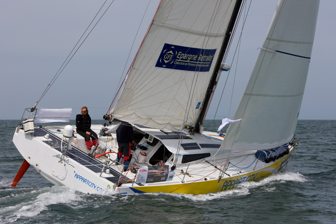 Yvan Noblet « Appart City » : « C’est la pétole. Cela revient, tout de même, un peu. On court après les nordistes. Le petit temps n’est pas l’allure favorite de notre plan Verdier. Nous jouons collé – serré avec Halvard Mabire et Peter Harding. La course a été intéressante tout au long de la côte anglaise. Content d’aborder la mer celtique au portant ».