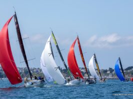 Partis du port roussillonnais avant le lever du soleil, les Farr 30 ont coupé la ligne de départ à 6 heures 35. Et le duel entre TPM – COYCH et Courrier Dunkerque de démarrer dès la bouée de dégagement, puisqu’ils la passent respectivement en première et troisième position. Dans 20 nœuds de Tramontane, les spis sont hissés et la flotte fonce entre 10 et 12 nœuds en direction du premier point de passage obligatoire. De nouveau, c’est TPM – COYCH, barré par Sébastien Col, qui enroule en tête cette marque située à mi-parcours. Il est suivi de Courrier Dunkerque et de Ville de Genève – Carrefour Prévention. L’équipage de Daniel Souben, magistral depuis le début de la compétition, semble avoir trouvé un adversaire à sa mesure.