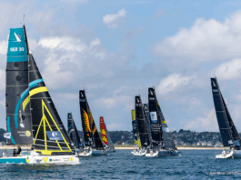 Dans l’après-midi, le vent tourne au Sud Ouest et monte à 25 nœuds. Les concurrents accélèrent encore, fonçant à 15 nœuds dans une mer verte, surfant sur des creux de 1,5 mètres. Des conditions idéales dans lesquelles les Hyérois de Fabien Henry creusent leur avance. A 16 heures, ils coupent la ligne d’arrivée sept minutes devant Courrier Dunkerque, deuxième. Barrés par Pierre-Loïc Berthet, les Nordistes distancent eux-mêmes de trois courtes minutes les Suisses de Ville de Genève – Carrefour Prévention. L’équipage local d’Elcimaï – Ville de Marseille est 4e. Belle performance également de Normale Sup – Lagardère, 5ème de l’étape et premier bateau étudiant. Un groupe qui correspond à ceux qui ont pris le large dès le départ, profitant de la bascule de vent.