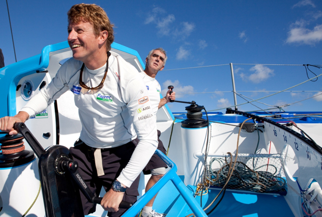 « C’est un vrai plaisir d’accueillir Loïck à bord. Cela correspond exactement à ce que je souhaitais : c’est-à-dire un skipper à part entière. Quelqu’un de très compétent, d’autonome avec qui il y a un échange permanent. Le couple fonctionne bien quand il y a une confiance réciproque. Il faut se reposer à 100% sur l’autre quand on n’est pas de quart. Nous avons une vision commune de la navigation. On l’a prouvé par le passé avec notre victoire dans la Transat Jacques Vabre en 2005 et la construction de deux sisterships compétitifs en 2007 (ndlr: Paprec-Virbac 2 et Gitana Eighty). Le premier a gagné la Barcelona World Race 2007 et le second The Transat 2008. »