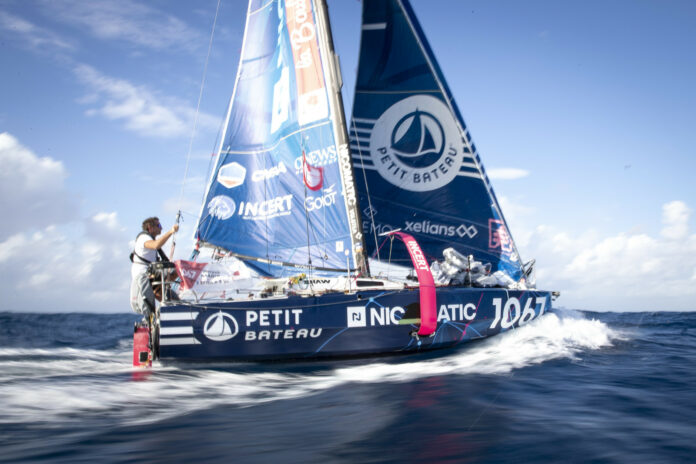 Le skipper du 1067 Nicomatic – Petit Bateau a coupé la ligne à 8h 21’57’’ , heure locale (13h 21’ 27’’, heure Paris) ce samedi 8 novembre après 13 jours 21 heures 21 minutes et 57 secondes de course à 7,82 nœuds . Il concède 3h57’12’’sur le premier Mathis Bourgnon sur le parcours théorique de 2 613 milles entre Santa Cruz de La Palma (Canaries) et Saint-François (Guadeloupe).