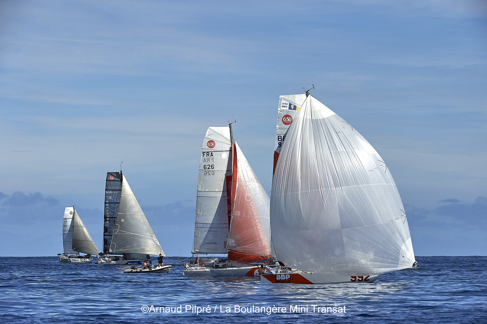 Après avoir reçu la Mini Transat en 1985, 2013, 2015 et 2021, la Guadeloupe est donc prête à accueillir les concurrents de l’épreuve une nouvelle fois. A Saint-François, c’est naturellement l’effervescence. Le village est en place, les pontons sont vidés. Et pour cause, c’est désormais dans un peu moins de 48 heures que les premiers sont attendus sur place. A date, les jeux sont encore loin d’être faits et il faudra assurément déclencher les chronos lors des passages de ligne des uns et des autres puis faire quelques calculs d’apothicaire avant d’avoir une idée précise du classement final, chez les Proto et plus encore chez les Série. C’est d’autant plus vrai que les derniers milles s’annoncent sous haute tension, avec, dans un premier temps, des alizés qui vont baisser un peu en intensité avant de reprendre des tours au moment de l’atterrissage sur l’île. « Dans les heures qui viennent, le vent va adonner pour les concurrents positionnés au sud. Ces derniers vont donc très probablement revenir un peu au score ou, à tout le moins, arrêter de perdre du terrain comme cela a été le cas ces dernières 48 heures, d’autant que dans le même temps, le vent va mollir un peu pour les solitaires plus au nord. En particulier pour ceux situés en deuxième moitié de flotte », prévient Christian Dumard, le consultant météo de la course.