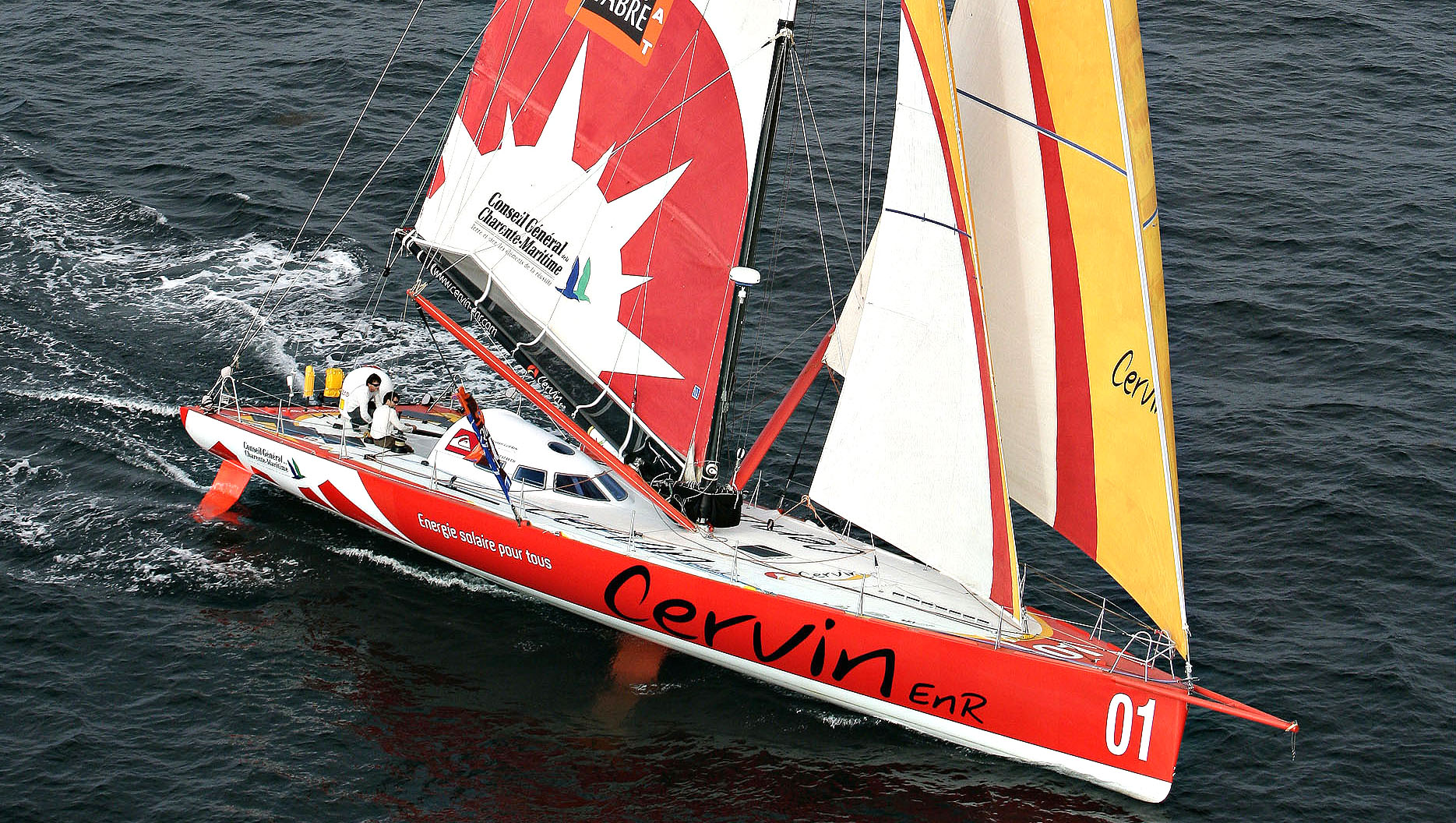 Quand Yannick Bestaven s’est engagé avec Cervin EnR (son sponsor principal) à restaurer et optimiser l’ex Aquitaine Innovations, construit en 1996, il s’était déjà investi dans la recherche d’énergies naturelles au service du nautisme et de la course en particulier. Le respect de l’environnement est une attitude fondamentale chez ce jeune ingénieur arcachonnais. Ses travaux pour explorer de nouveaux systèmes de production d’énergie, de stockage et de distribution économique se sont concrétisés lors de la création de la plateforme rochelaise EAM (Energies Autour du Monde) fondée à son initiative en été 2007. L’équipe, aujourd’hui enrichie de deux ingénieurs en R & D et de plusieurs opérateurs, poursuit les travaux au sein d’une écurie de plusieurs bateaux dédiés à la course. Le 60 pieds « Cervin EnR » est l’un de ces bateaux -laboratoires qui permettront aux techniques d’évoluer et de se développer.