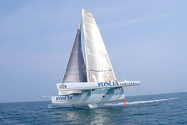 – Le trimaran ex-Biscuit La Trinitaine ayant été vendu, c’est à bord du trimaran ex-Foncia que les sorties se dérouleront dorénavant. Rappelons que ce trimaran construit en 2002 à navigué sous les couleurs de Foncia jusqu’en 2006 avec aux commandes Alain Gautier mais également Armel Le Cléac’h durant 2 saisons. Il est aux côtés de Groupama 2 et de Banque Populaire IV l’un des trois trimarans ORMA les plus performant jamais construit. Entièrement révisé en 2008 le bateau est comme neuf.