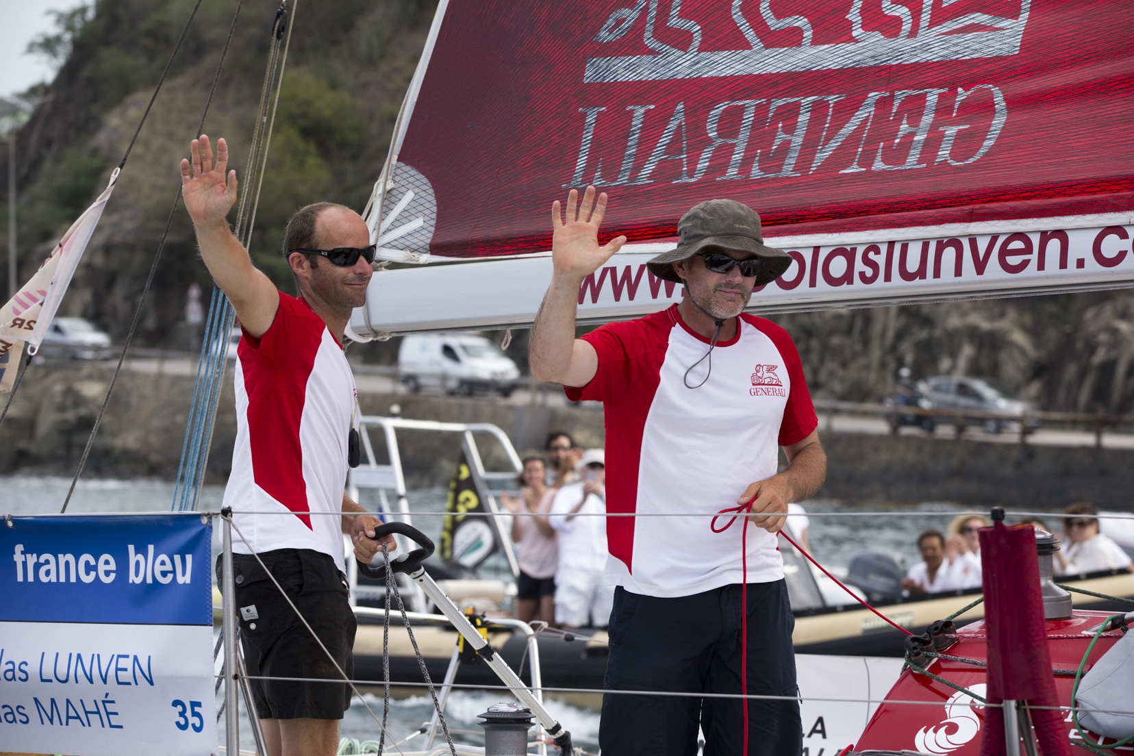 Nicolas Lunven et Gildas Mahé, à bord du voilier Generali, ont coupé la ligne d’arrivée de la Transat AG2R La Mondiale 2016 aujourd’hui à 14h 18mn et 57s en deuxième position avec seulement 4 mn et 4s de retard sur Thierry Chabagny et Erwan Tabarly, vainqueurs.