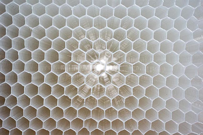 Très légers, ces nids d’abeilles structurels, à cellules hexagonales, ont une épaisseur allant de 5 à 150 mm. Ils possèdent de très bonnes propriétés mécaniques, notamment en résistance en compression et aux chocs. Ils sont imputrescibles et sont isolants thermiques et phoniques. Recyclables, ils sont chimiquement inertes et non polluants.