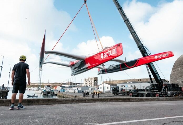 Anthony Marchand navigue désormais sur l’Ultim le plus performant, l’ex-Gitana 17. Le Groupe Actual après 24 ans d’engagement passionné dans la course au large, vise la performance et l’excellence sportive. Le bateau a été présenté à Lorient paré de ses nouvelles couleurs.