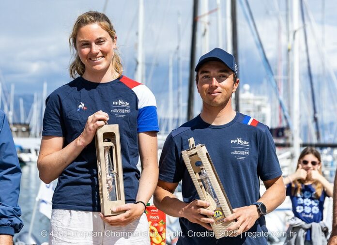 Matisse Pacaud et Lucie de Gennes (YC Cannes) ont décroché la medaille de bronze sur le Championnat d’Europe de 470, disputé à Split en Croatie. Pourtant mal embarqués après une première journée difficile, le jeune duo est remonté petit à petit au classement jusqu’à grimper sur la 3e marche du podium avant la Medal Race ce samedi. 3e de cette ultime course Matisse et Lucie, déjà triples Champions du Monde chez les Jeunes, ont décroché leur première médaille internationale chez les « Grands » !