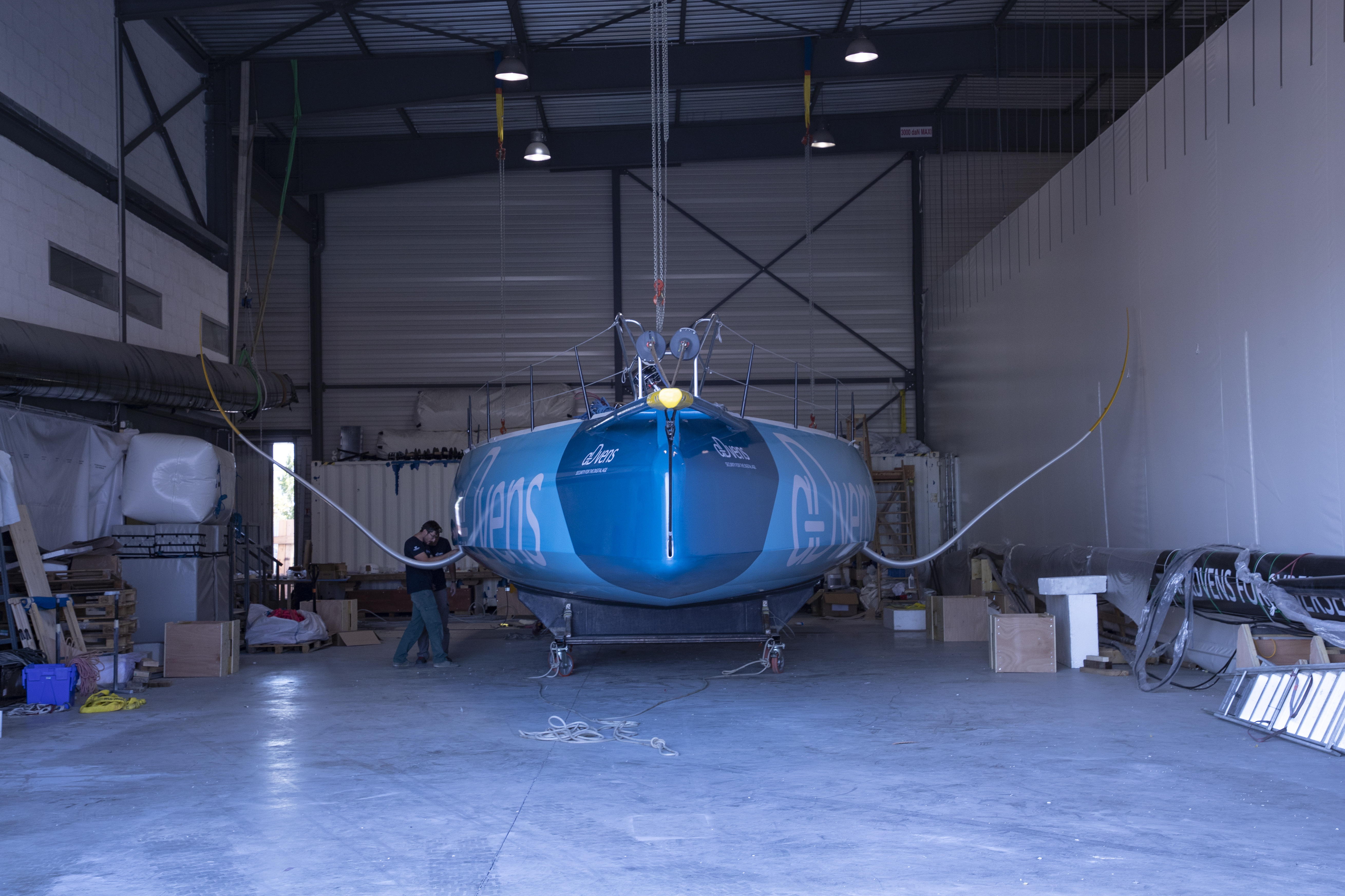 « C’est une nouvelle ère qui s’est ouverte après la conception, explique Charlie Dalin. C’est fantastique de voir prendre vie tout ce qu’on a imaginé. A chaque navigation, il me revient ces grandes discussions que nous avons eues, avec Guillaume Verdier, l’équipe de MerConcept et Apivia Mutuelle. Le week-end dernier, j’ai revécu nos échanges sur l’aménagement de l’espace intérieur et l’endroit par lequel on passe les sacs lors du matossage. C’est touchant de voir les plans s’animer, je trouve un bateau qui ressemble à ce que nous avons imaginé ».