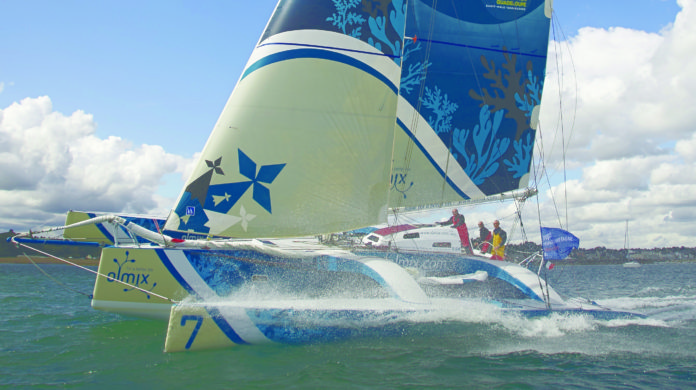 La classe Rhum Multi est emmené depuis le départ par Pierre Antoine sur Olmix. La première journée a été marquée par une belle bagarre entre Olmix et le catamaran de David Ducausson, Air Antilles – Caseneuve Maxi Catamaran. Mais après le passage de Ouessant, à la pointe Bretagne, les conditions de navigation sont devenues beaucoup plus difficiles. Avec une mer très forte et un vent modéré, Olmix n’a pas assez de vitesse pour être bien stabilisé : « c’est extrêmement inconfortable ! » disait Pierre Antoine lors d’une vacation radio lundi midi.