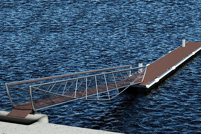 A travers une définition technique très précise et un choix de matériaux bien adapté, la nouvelle passerelle de Poralu Marine se distingue par la singularité de sa ligne esthétique tout en respectant les normes en vigueur. Elle se compose d’un châssis inférieur et de gardecorps avec un système de parois transparentes. En modifiant le design des garde-corps, Poralu Marine a allégé l’aspect de la passerelle et permet ainsi une vision à 360°. Un effort particulier a été fourni dans la recherche d’une meilleure adaptation entre la fonction de la passerelle, les matériaux utilisés et les utilisateurs. L’ergonomie permet d’apprécier la passerelle de l’extérieur comme de l’intérieur. Intégrant ainsi les critères d’esthétisme des marchés haut de gamme, elle se démarque par un design épuré et original et une conception basée sur une structure renforcée innovante. Conçue pour se fondre dans l’environnement naturel, cette passerelle semble répondre aux enjeux du développement durable, grâce à l’utilisation de matériaux recyclables et à une réduction de la masse.