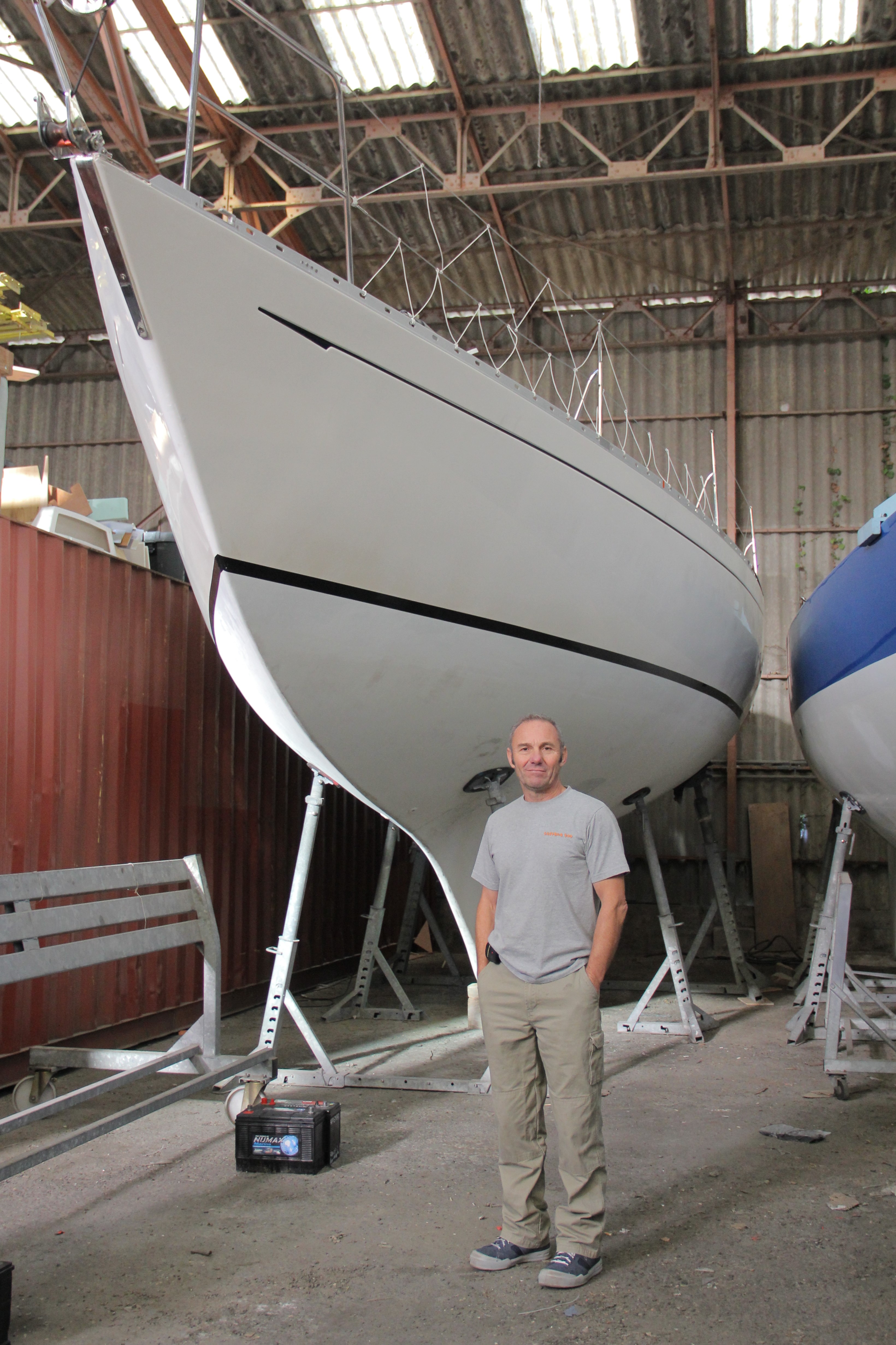 Quant aux bateaux, ils doivent répondre à différents critères : 36’ de long, une quille longue donc moulée dans la forme du bateau, un safran attaché à la quille,… Les bateaux doivent être de série, produits à au moins 20 exemplaires et surtout, leurs dessins doivent être antérieurs à 1977. Philippe Péché a choisi de partir à bord d’un monocoque de 36 pieds de marque Rustler. Un bateau qu’il a entièrement retapé ces derniers mois au chantier Kervilor de Saint-Philibert dans le Morbihan et qu’il va mettre à l’eau à la mi-février. « Ce bateau est le plus moderne des bateaux tolérés. C’est un des seuls à avoir une barre franche et aussi un des plus longs à la flottaison. C’est en partie pour ces raisons que je l’ai choisi. Il convient vraiment à ce que je recherchais » explique Philippe.