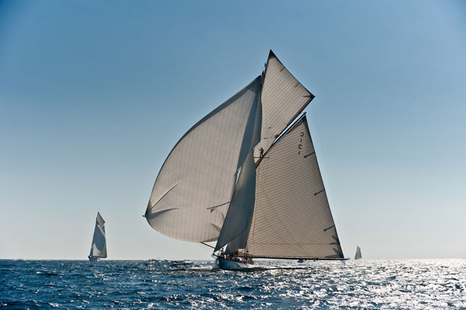 Avec huit nœuds de brise thermique bien établie qui se renforçait en milieu d’après-midi jusqu’à une quinzaine de nœuds, les équipages ont pu envoyer toute la toile : flèche, artimon, gennaker, foc ballon, spinnaker, trinquette, clin foc et autres voiles de misaine ont fait le spectacle entre Cannes et la pointe de l’Esquillon ! Labourée par les carènes affûtées par une journée d’entraînement, la Grande Bleue a mis à contribution les équipages qui ont cherché à grappiller sillon après sillon, de quoi compenser leur handicap établi par la jauge CIM… Côté rosé (Epoque aurique C), le meilleur tirage revient à Bona Fide qui réalise le meilleur temps réel, mais laisse la victoire en temps compensé à Oriole (Francis van de Velde), talonné par le plus ancien voilier de la flotte, Marigold (Jason Gouldstone).