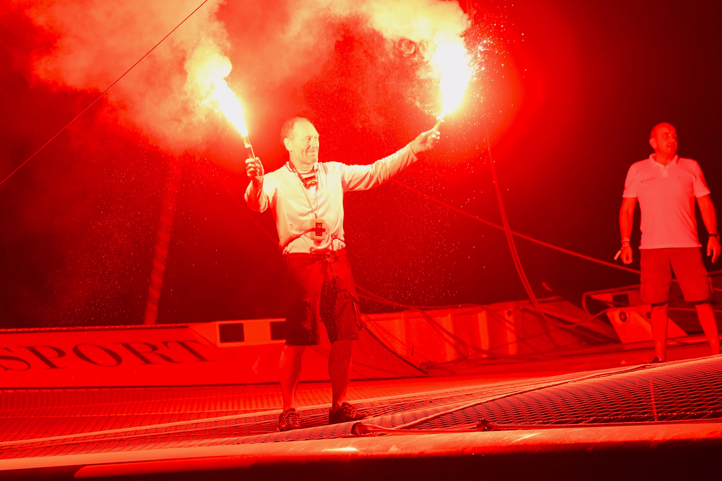 Je suis content d’avoir gagné. Si je ne gagnais, j’aurai été un âne. Il fallait que je fasse un petit effort pour gagner. On a eu un virement d’anthologie avant la ligne. C’était incroyable de battre François. C’était du match race. Si on n’est as loin des 98s je suis content d’offrir ce clin d’œil à Mike Birch qui est un ami. Je suis content d’apprendre que je bat un record. C’est un grand truc. Une très belle arrivée. Je pensais dire à François il y a deux jours que j’étais content d’avoir animé sa croisière mais finalement c’est moi qui gagne. Je suis admiratif de ses capacités, de son talent et de sa gentillesse. Je suis fier d’avoir régaté face à lui. Nous avons eu des conditions de mer difficiles, casse bateaux. Le mien était bien éprouvé.