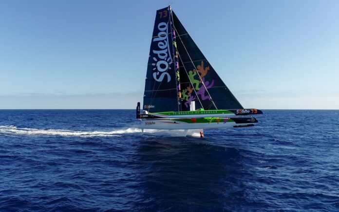 48h après avoir quitté sa base de Lorient en direction de Cadix, l’équipage de Sodebo Ultim 3 a donc lancé le chrono pour tenter de battre ce record de la Route de la Découverte entre Cadix et San Salvador. Depuis le 7 janvier, Sodebo Ultim 3 est en stand-by pour tenter le record de la Route de la Découverte. Thomas Coville et ses cinq équipiers – Thomas Rouxel, Guillaume Pirouelle, Nicolas Troussel, François Duguet et Léonard Legrand sont à bord. Ils tenteront alors de battre le record entre Cadix et San Salvador aux Bahamas en moins de 6j 14h et 29minutes.