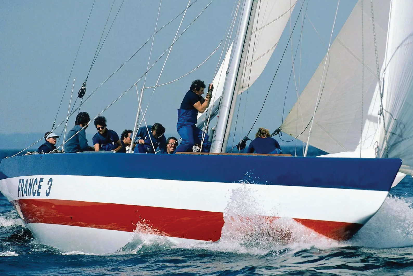 Construit au chantier Dufour et mise à l’eau en 1979, à La Rochelle, France 3 est un 12 MJI en aluminium à la livrée bleu-blanc-rouge, dernier voilier financé par le Baron Bich pour la coupe America 1980, et à ce jour le voilier français ayant obtenu le meilleur résultat à la coupe de l’America avec une place de finaliste des challengers en 1980 à Newport.