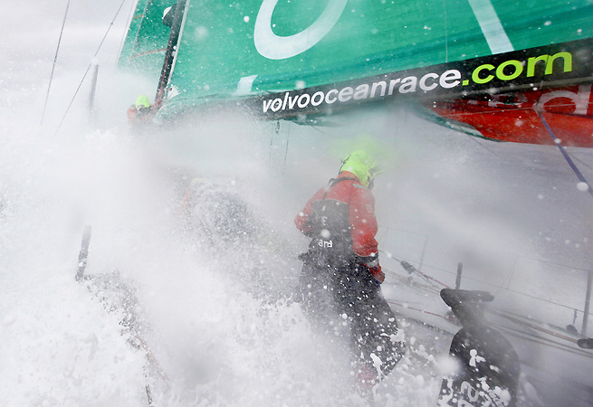 Heureusement, ce problème technique s’est opéré avant la tombée de la nuit et Franck Cammas et son équipage ont pu remettre du charbon sous voilure réduite alors que la brise montait à plus de trente noeuds. L’écart qui avait atteint plus de onze milles sur les leaders espagnols s’est rapidement réduit à six milles avec les Américains à vue sous le vent, et les néo-Zélandais juste au vent. Malgré ce léger ralentissement passager, Groupama 4 enregistrait 560 milles au compteur sur les dernières 24h (de 15h mercredi à 15h jeudi), sa plus grande distance parcourue depuis le départ de la Volvo Ocean Race à Alicante !