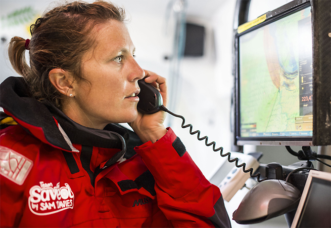 « Je suis dégoûtée parce que mon Vendée Globe est fini mais je ne suis pas blessée. Quand c’est arrivé, hier soir, je venais de passer le front, j’étais tribord amure. Au passage du front, il y avait quasiment pas de vent. C’était hyper dur, il y avait des moments où il y avait 30 nœuds, d’autres où il y avait 5 nœuds. Ça commençait à s’établir, j’avais entre 25 et 30 nœuds. J’étais sous ORC et deux ris. Un peu sous toilée, mais comme depuis le début, je ne voulais pas prendre de risques. J’étais au largue et le problème c’est qu’il y avait beaucoup de mer. Le bateau sautait entre les vagues.  Et puis j’ai eu un premier grain à 40 nœuds. J’ai abattu pour ne pas taper dans les vagues. J’étais en train de préparer mon ciré pour aller prendre le 3e ris. Le bateau s’est pris une vague et j’ai entendu le choc. J’ai tout de suite compris ce que c’était. »