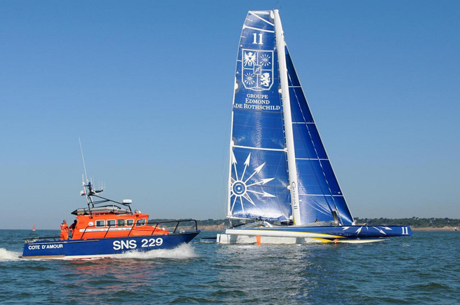 Il vient de changer de main, il n’en reste pas moins un fidèle du Record SNSM et un de ses plus grands animateurs. A bord d’AXA Atout Cœur pour AIDES, Erik Nigon, nouveau venu dans la classe des multicoques de 50 pieds, a tiré pleinement parti des conditions favorables à la glisse pour améliorer son propre temps de référence établi l’année dernière. Le Multi 50, mené alors par Victorien Erussard, s’appelait Laiterie de Saint-Malo. Cette année, ce prototype très fiable, rapide et puissant, refait à neuf pour la Route du Rhum 2006, a parcouru les deux boucles entre Saint-Nazaire et Sainte-Marine à près de 11,5 nœuds de moyenne contre 9,5 en 2009.