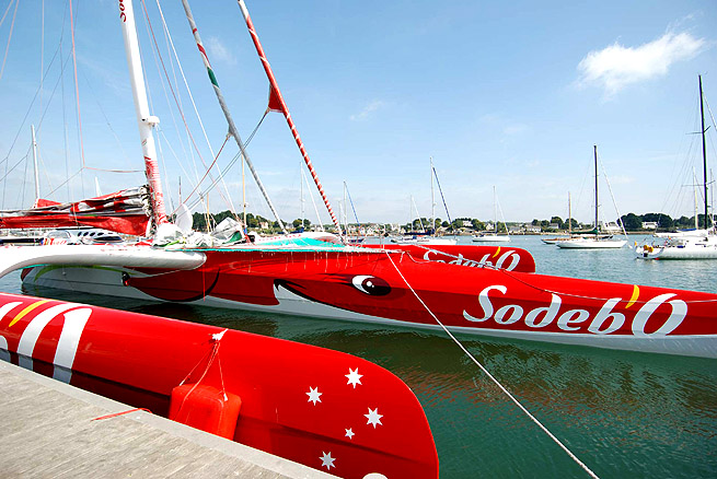 Mis à l’eau en Australie le 21 juin dernier, le maxi trimaran Sodeb’O de 32 mètres et son skipper Thomas Coville ont bouclé la nuit dernière un demi tour du monde exaltant. Soit 63 jours de tests de navigation en solitaire et en équipage à travers le Pacifique, l’Océan Indien, la Mer Rouge, la Méditerranée et l’Océan Atlantique. Deux mois et demi après sa mise à l’eau, Thomas Coville conclut aujourd’hui un voyage qui l’aura mené alternativement en équipage et en solitaire de Sydney à La Trinité sur Mer en passant par Darwin, Bali, Les Seychelles, les côtes d’Arabie Saoudite et d’Egypte, le canal de Suez, Malte, Alger et Gibraltar.