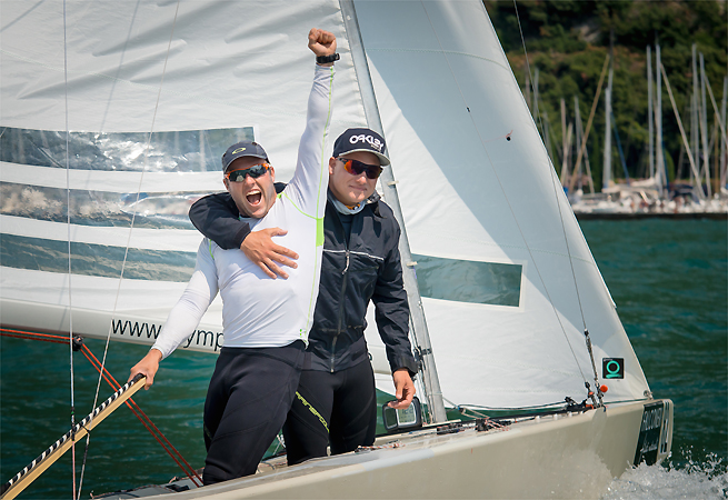 Dans des airs toujours plus légers, la paire italienne accroissait son avance et finissait la course avec une marge confortable mais cette victoire dans la dernière manche ne leur suffisait pas à accrocher un premier titre mondial à leur palmarès. Melleby/Prada faisait montre d’une vitesse exceptionnelle lors de la dernière descente au vent arrière pour prendre l’avantage sur la paire grecque et attaquer le Suisse Flavio Marazzi, en compagnie de sa femme Anouk. Les deux équipages étaient au coude à coude mais la paire suisse passait l’épaule sur la ligne pour prendre la deuxième place pour moins d’un mètre.