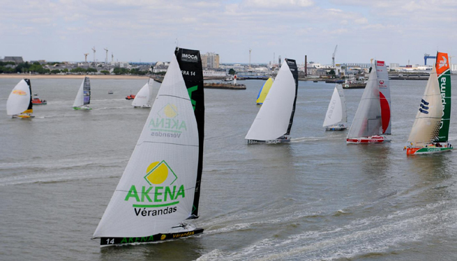 C’est donc bel et bien parti pour les 53 bateaux et les 271 équipiers de cette édition 2010. L’intensité de la régate est bien de mise dès les premiers milles. Au phare du Grand Charpentier, c’est une flotte aussi compacte qu’hétéroclite qui s’apprête à laisser l’Estuaire dans ses tableaux arrière. En Class’ 40, Cheminées Poujoulat ouvre toujours la marche suivi de près par le nouvel Appart City d’Yvan Noblet, qui n’est autre que l’ancien bateau de Giovanni Soldini. Ces deux-là ont incontestablement tiré leur sillage du jeu dès les premières longueurs et affichent une jolie avance sur leurs sept autres collègues de flotte.