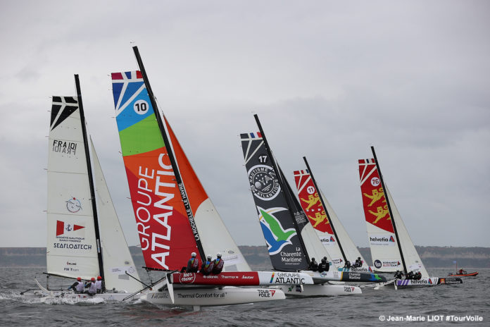 C’est au large du Havre que les dix Diam24 OD du Tour Voile 2021 ont disputé ce lundi 5 juillet un raid de 21 milles. Absent une bonne partie de la journée, le vent a fini par se lever et c’est finalement à 17h20 qu’un départ spectaculaire a pu être donné. À l’issue d’une très jolie bataille, Groupe Atlantic a remporté sa troisième victoire consécutive. Au classement général, l’équipage mené par Clément Cron revient à un petit point d’Helvetia Blue by Normandy Elite Team, deuxième aujourd’hui et toujours leader au général. Le podium provisoire est complété par Royan Atlantique, qui a décroché la troisième place du raid.