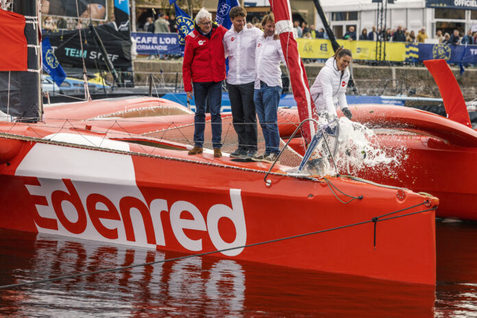 Après un baptême à la Trinité-sur-mer en présence d’un parrain d’exception Mike Horn en septembre, c’était au tour de la marraine, Delphine Teillard, engagée depuis plus de 15 ans dans l’association Sport dans la Ville, de baptiser samedi l’Ocean Fifty Edenred 5. Principale association d’insertion sociale et professionnelle des jeunes par le sport en France, Sport dans la Ville est soutenue depuis 2019 par Edenred et accompagne aujourd’hui plus de 12 000 jeunes. Delphine Teillard dirige le programme « L dans la Ville » à destination des 3 500 jeunes filles de l’association.