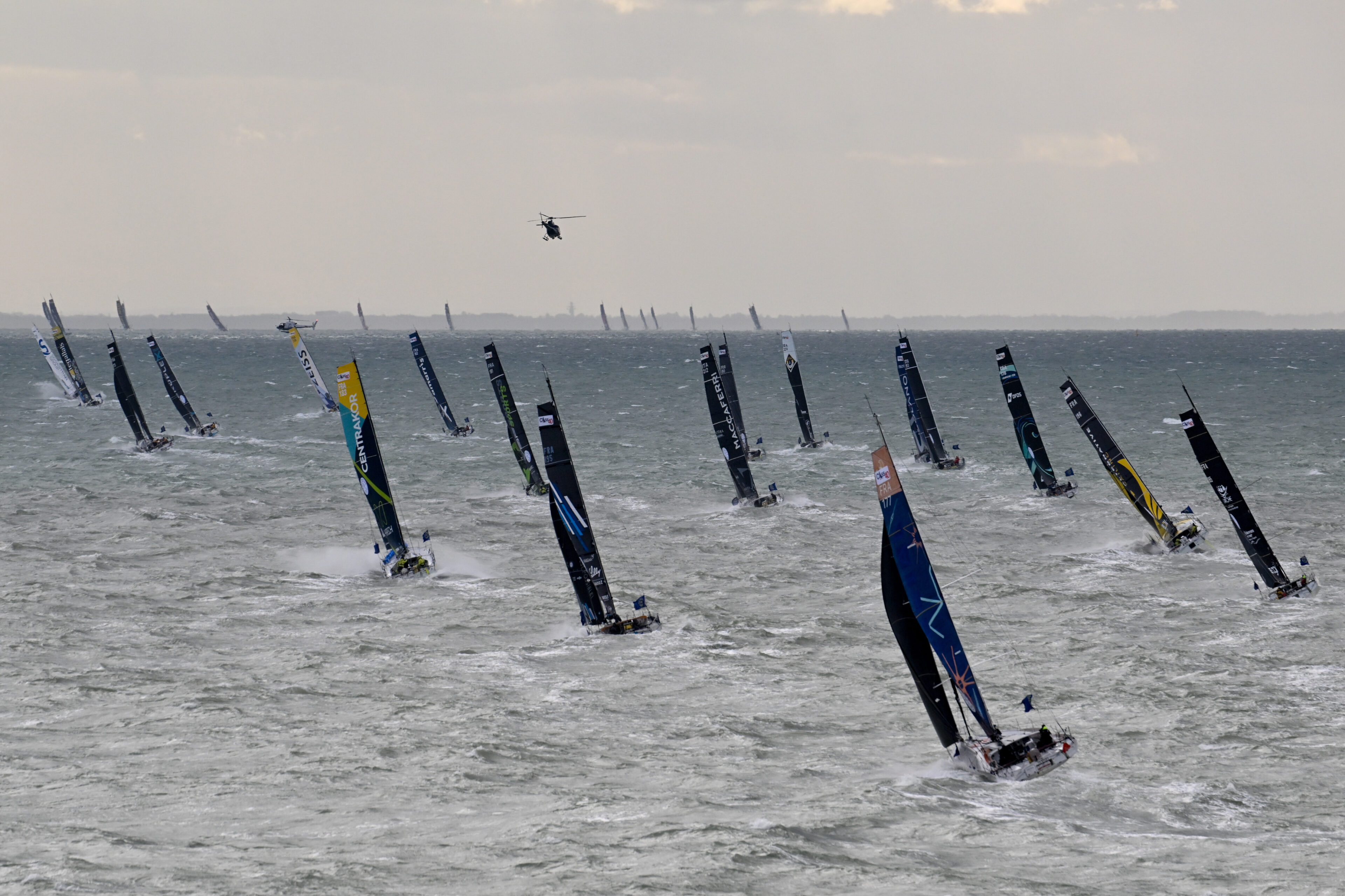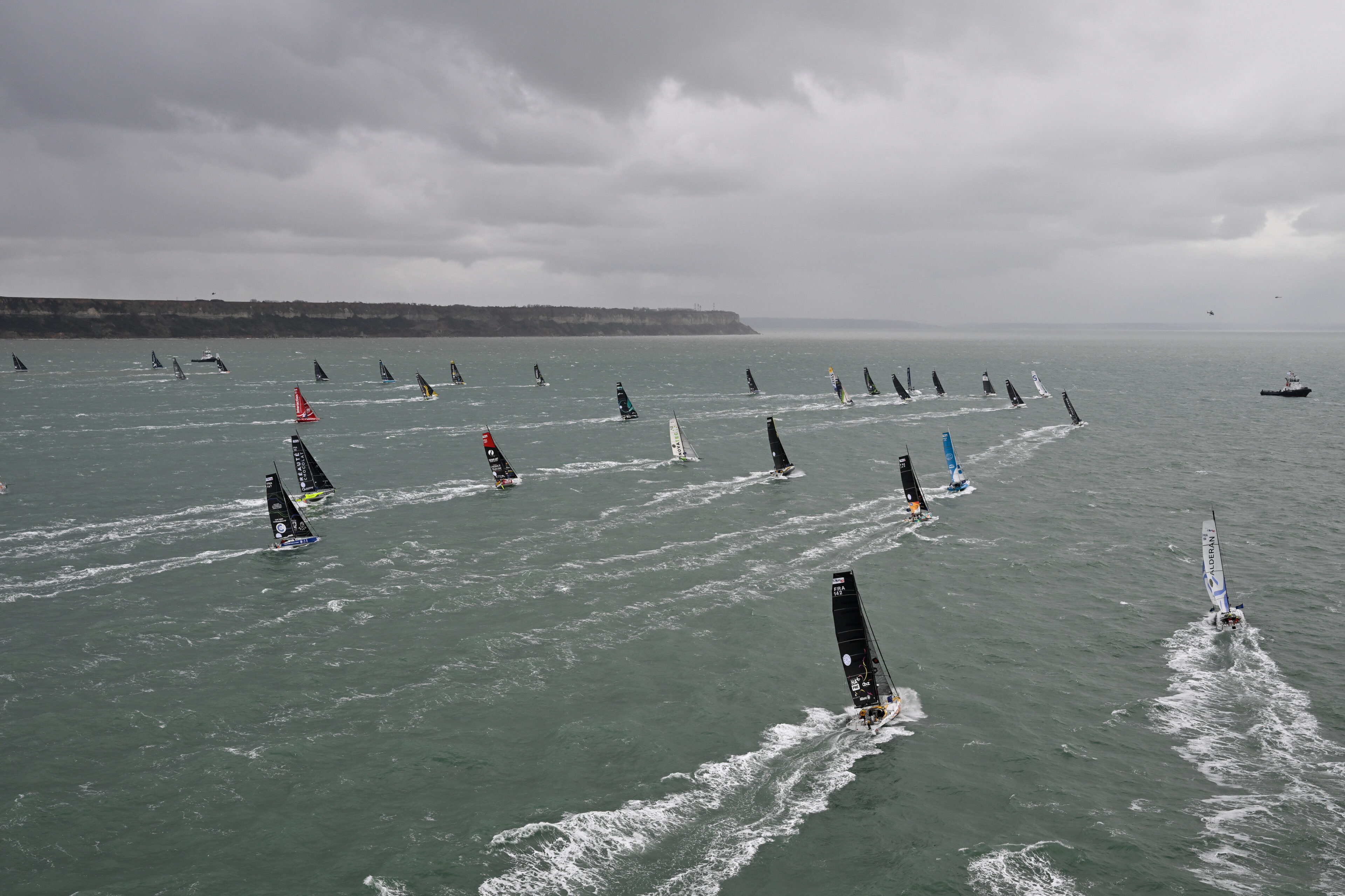 Les images du départ étaient belles mais cela devait sans doute être difficiles à bord des 3 classes qui se sont élancés ce dimanche. Sous un ciel nuageux et dans une mer déjà formée, ce départ musclé a donné le ton d’une édition déjà marquée par la météo, qui a conduit la direction de course à ajouter une escale pour les Class40.