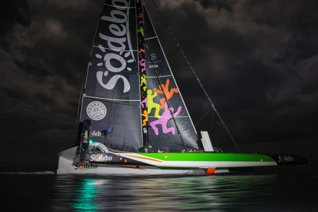 Sodebo Ultim 3 a pris ce jeudi, à 2h40 à Fort-de-France (7h40 en métropole), la deuxième place de la 17e édition de la Transat Café L’Or. Une très belle performance pour Thomas Coville, qui monte ainsi pour la quatrième fois sur le podium de la transat en double (victoires en 1999 et 2017, 2e place en 2015), et Benjamin Schwartz, dont c’était la toute première participation. D’entrée dans le match, le duo a su rivaliser en vitesse avec ses concurrents et faire preuve d’audace lors de certains passages clés de la course. Sodebo Ultim 3, qui arrive en très bon état à Fort-de-France, aura mis 10 jours, 17 heures, 30 minutes et 9 secondes pour boucler les 5400 milles du parcours entre Le Havre et la Martinique. Thomas et Benjamin terminent à seulement 4 heures, 26 minutes et 11 secondes du vainqueur, SVR-Lazartigue (Tom Laperche/Franck Cammas). Ils réalisent ce parcours à la moyenne de 20,97 nœuds sur la route directe (25,60 nœuds sur les 6591 milles réellement parcourus).