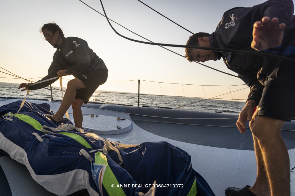 «  Je suis contente de notre départ et de nos 30 premières heures de navigation, même si on a bien galéré avec notre problème de grand-voile. On a essayé de résoudre le problème en mer, mais c’était chaud, il y avait 40 nœuds de vent, on ne pouvait pas monter au mât pour réparer et on n’aurait pas pu continuer comme ça. Quand on prend le départ d’une course, on a forcément envie de la terminer, alors c’est dommage, c’est sûr, mais c’est une sage décision. C’est la vie, c’est le sport, il faut rester pragmatique » soulignait la navigatrice portugaise Mariana Lobato.