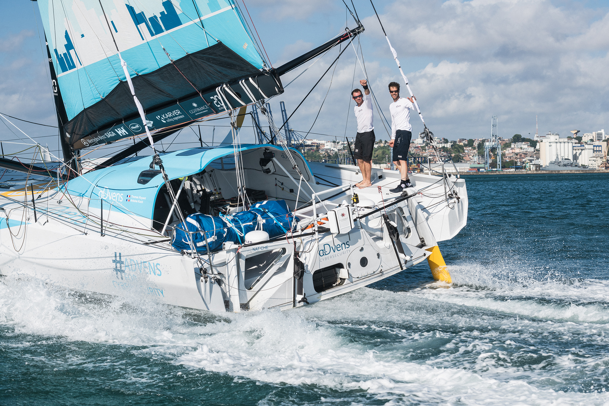Thomas Ruyant : « C’est de loin ma meilleure 4ème place à Bahia ! (Après 2015 et 2017 ndlr). Cette course a été énorme, avec de multiples rebondissements. Prendre dans ces conditions une quatrième place, pour notre première course, même pas la 10ème sortie du bateau depuis sa mise à l’eau, face à un tel plateau…. Nous sommes vraiment heureux ! Nous avons effectué une superbe remontée. C’était très excitant. Cela s’est fait petit à petit. Plus on avançait, et plus on comprenait le mode d’emploi du bateau, et plus on accélérait. On a bien navigué avec Antoine ! C’est une belle récompense, pour toute l’équipe, Laurent Bourguès, le partenaire Advens et son fondateur Alexandre Fayeulle, nos investisseurs, nos supporters… Je suis content pour eux ! Le bateau a un potentiel fantastique. Il est super exigeant ! il demande une attention de tous les instants ! Il veut aller vite en permanence. Il faut être avec lui pour répondre à toutes ses demandes de réglages pour aller toujours plus vite. En double, on a au fil de la course trouvé les manettes, le mode d’emploi. Il me tarde à présent d’écrire le manuel en solitaire. On va commencer dans 10 jours avec le convoyage retour en solo. Ce sera forcément plus compliqué, mais à un an du Vendée Globe, on va y aller progressivement, par paliers, avec toute l’équipe pour trouver ce nouveau mode de fonctionnement en solitaire. Cette Transat Jacques Vabre a été une aventure humaine passionnante. Antoine a été le co-skipper que j’attendais, très grand marin, analyste pertinent de la technique du bateau. J’ai beaucoup appris à son contact. »